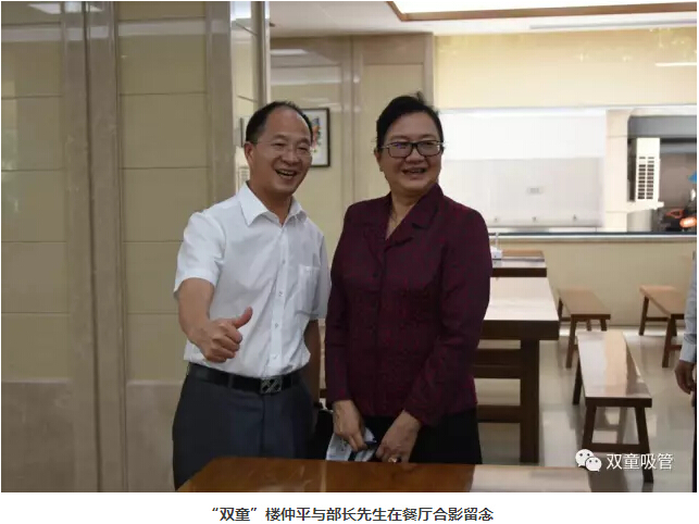 “其實,在優(yōu)質(zhì)硬件背后,我們的目的也是基于穩(wěn)定員工而提升員工素質(zhì),逐漸改善員工的意識形態(tài)和生活習慣,用'心'生產(chǎn)出一流的產(chǎn)品!”在看到如此精細的就餐環(huán)境之后,部長先生稱贊:想不到一個生產(chǎn)吸管工廠的員工們可以享受到如此優(yōu)質(zhì)的就餐環(huán)境。她說:”我真是太喜歡‘雙童’了!”這不,她還邀請樓仲平一起在餐廳合影呢!