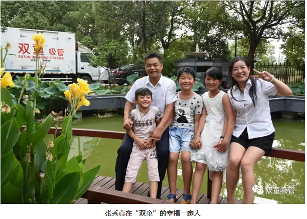 三個(gè)孩子生于公司長(zhǎng)于公司,一出生就有了幾百個(gè)叔叔阿姨、哥哥姐姐。“雙童”的生活環(huán)境讓孩子們養(yǎng)成了良好的衛(wèi)生習(xí)慣,孩子們總說(shuō),“我有兩個(gè)家,一個(gè)是奶奶家,一個(gè)就是“雙童吸管”——爸爸媽媽的家!”一家五口早已對(duì)“雙童”有了深厚的感情!