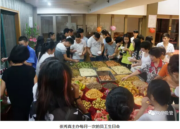 值得一提的是,“雙童”員工們最喜歡的生日會(huì),基本上都是由后勤部門(mén)負(fù)責(zé)組織舉辦!如何把生日會(huì)辦好,也是一門(mén)學(xué)問(wèn)。如何根據(jù)生日壽星的人數(shù)、部門(mén)、年齡段,安排生日會(huì)的形式、飲食、游戲環(huán)節(jié)等等,都是張秀真要思考的問(wèn)題。員工們總說(shuō),“雙童”的生日會(huì)每次都玩得很盡興!這些都離不開(kāi)張秀真的用心策劃呢!