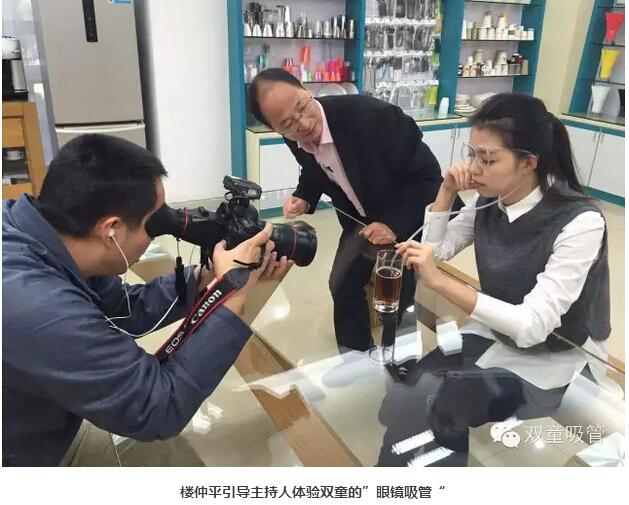 看,我們的愛(ài)心吸管、哈哈吸管、眼鏡吸管成功地吸引了攝制組的注意,將鏡頭對(duì)準(zhǔn)它們進(jìn)行特寫(xiě)拍攝,并有樓仲平為它們做介紹!在這期節(jié)目播出后,我們的創(chuàng)新吸管將刷新千萬(wàn)人對(duì)于一根小小吸管的傳統(tǒng)簡(jiǎn)單認(rèn)知,讓人們知道,原來(lái)吸管也可以是一種時(shí)尚!