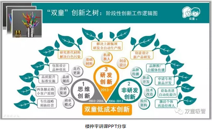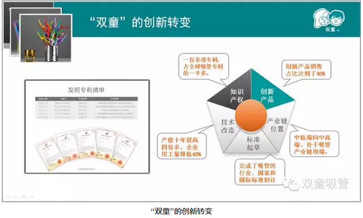 這些年來,樓仲平也一直致力于推動(dòng)“雙童”的創(chuàng)新工作,并研發(fā)了愛心吸管、風(fēng)車吸管、哈哈吸管、音樂吸管等100多種創(chuàng)新產(chǎn)品。目前為止,擁有了100多項(xiàng)專利,掌握了全球吸管行業(yè)近2/3的專利!通過標(biāo)準(zhǔn)、知識(shí)產(chǎn)權(quán)、科技的創(chuàng)新,“雙童”也逐步從全球最大”成長(zhǎng)為“全球最強(qiáng)”!