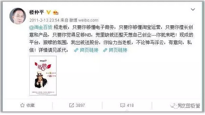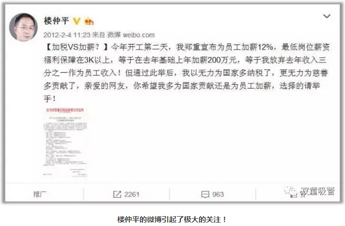 通過對(duì)經(jīng)營(yíng)模式的創(chuàng)新改變,“雙童”創(chuàng)造了差異化亮點(diǎn),引發(fā)了大批媒體的關(guān)注和報(bào)道。這讓“雙童”樓仲平體會(huì)到了社會(huì)關(guān)注對(duì)“雙童”品牌的助推作用,也引發(fā)了“如何不花一分錢去引導(dǎo)媒體關(guān)注”的思考。2009年,新浪微博應(yīng)運(yùn)而生,深受互聯(lián)網(wǎng)影響的“雙童”樓仲平成為了首批受邀開通的博主,并注冊(cè)了個(gè)人微博和“雙童”企業(yè)微博。在寫微博期間,由于當(dāng)時(shí)他寫的微博更多是企業(yè)管理認(rèn)知和中小企業(yè)思考的話題,所以寫這些博文時(shí)需要查閱大量的資料和信息,這也促進(jìn)了樓仲平更快的提升。同時(shí),他寫的微博也得到了社會(huì)各界的極大關(guān)注,乃至于一年多時(shí)間寫到了當(dāng)時(shí)金華地區(qū)微博流量最大的民營(yíng)企業(yè)主之一。