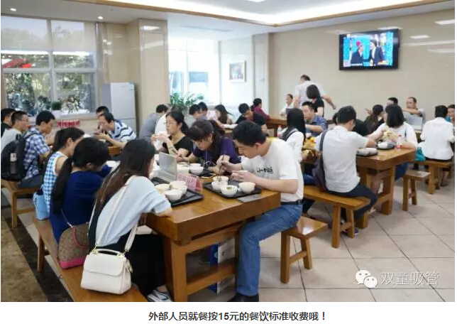 如此好的員工餐廳,總是免不了外部的參觀人員想要來體驗,為了保障食堂的成本,我們設(shè)置了每人15元的餐飲標(biāo)準(zhǔn)!不少來“雙童”體驗員工餐的小伙伴們都表示:“15元能吃到如此營養(yǎng)美味的飯菜十分值得呢”!