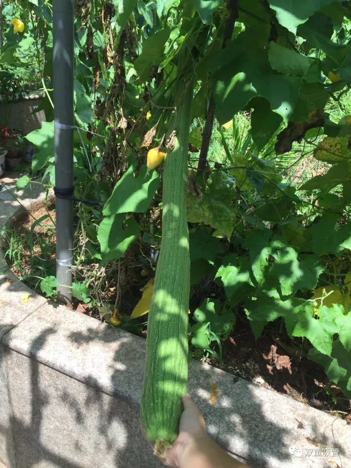 接下來這個(gè)瓜可是堪稱藝術(shù)品呢!一般的葫蘆瓜都是直筒的,而“雙童”菜園里的葫蘆瓜居然長成了一個(gè)名副其實(shí)的葫蘆瓜。吸管君直言,把瓜仁挖了,都可以當(dāng)酒壺啦!