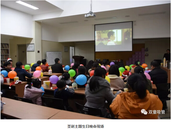 生日party撞上圣誕周,我們也特地為每位壽星們都準(zhǔn)備了圣誕禮物??炜?,壽星們?nèi)耸忠粋€(gè)平安果,頭上還有一頂可愛的圣誕帽子,可愛極了!在生日會(huì)現(xiàn)場(chǎng),“雙童影院”為壽星們放映了喜劇電影《縫紉機(jī)樂隊(duì)》,在精彩的電影情景中,在濃厚的圣誕氛圍中,壽星們共同度過了美好的夜晚!