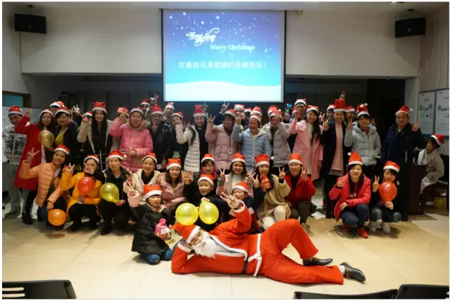 既然是圣誕party,圣誕老人自然必不可少!瞧!員工們、孩子們看到“圣誕老人”纏著他不肯放,場(chǎng)面熱鬧極了!