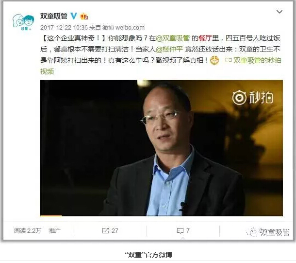 下面,吸管妞就借“雙童”樓仲平的一段采訪小視頻,揭秘“雙童”為什么能夠搞好衛(wèi)生工作的真相!