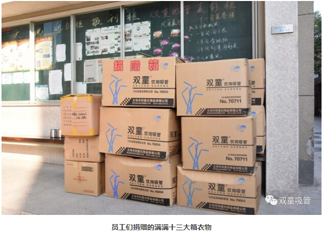 前幾天,吸管妞也將收拾好的衣物送至“義烏十大好人”老丁的衣物捐贈處。由于衣物太多,我們用了“雙童”的廠車運輸,順便也給我們自己做了宣傳,哈哈?。±隙”硎荆菏指兄x“雙童”多年來堅持舉辦暖冬活動,也希望有更多的人能夠參與到此項活動中來!