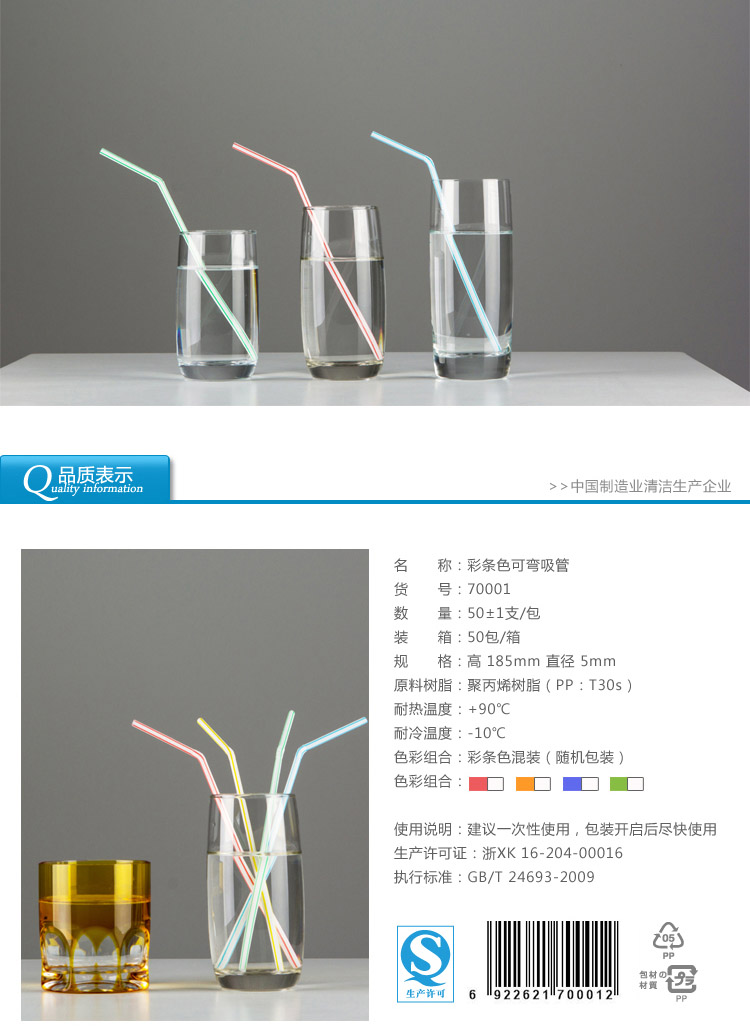 70001雙童50支彩條色普通彎吸管