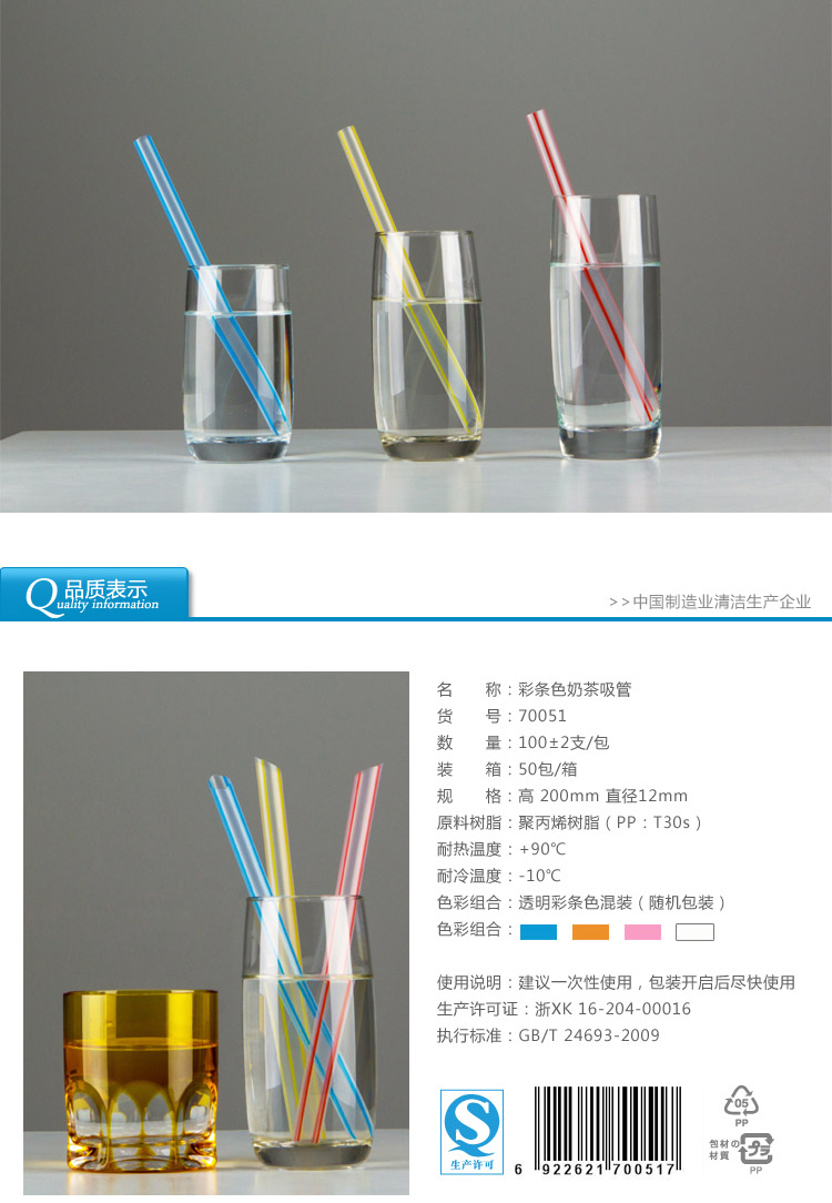 70051雙童100支透明彩條色珍珠奶茶吸管