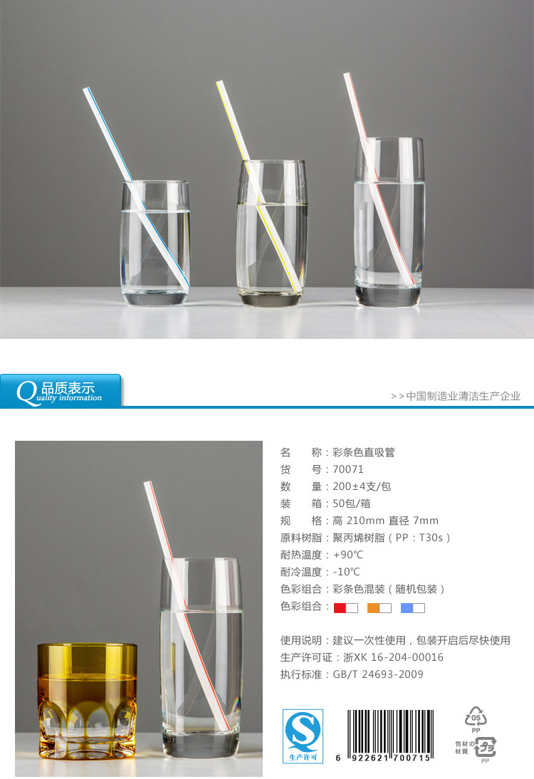 70071雙童200支彩條直吸管